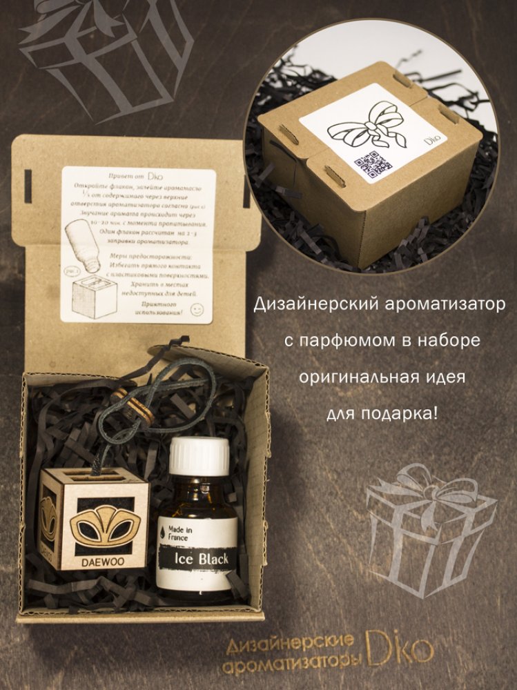 Французский автопарфюм в салоне Daewoo в дизайнерском исполнении от Diko. Автоароматизатор позволит долго наслаждаться приятным, дорогим ароматом и внешней эстетикой в салоне автомобиля. Стильный, минималистичный дизайн и легендарный запах парфюмерного масла дарят истинное ощущение роскоши. Ароматизатор для автомобиля Дэу - это парфюм для салона ручной работы с искусной детализацией. Пахучка подвеска в авто из эко материалов в деревянном корпусе, внутри щепа бука, снаружи фетр и 100% кожа, это сочетание материалов полностью раскрывает аромат. Арома-подвеска на шнурке регулируется по высоте. Ароматизатор в машину Дэо многократно превосходит пластиковые, стеклянные аромадиффузоры и другие аналоги. Ароматизатор в авто унисекс одинаково понравится мужчине водителю и автоледи. Многоразовый авто ароматизатор Daewoo - безупречный подарок для автолюбителя. Дарить такое приятно, а получать - вдвойне! Подарочная упаковка приумножит эмоции от презента.