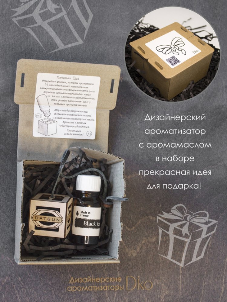 Французский автопарфюм в салоне Datsun в дизайнерском исполнении от Diko. Автоароматизатор позволит долго наслаждаться приятным, дорогим ароматом и внешней эстетикой в салоне автомобиля. Стильный, минималистичный дизайн и легендарный запах парфюмерного масла дарят истинное ощущение роскоши. Ароматизатор для автомобиля Датсун - это парфюм для салона ручной работы с искусной детализацией. Пахучка подвеска в авто из эко материалов в деревянном корпусе, внутри щепа бука, снаружи фетр и 100% кожа, это сочетание материалов полностью раскрывает аромат. Арома-подвеска на шнурке регулируется по высоте. Ароматизатор в машину Датсун многократно превосходит пластиковые, стеклянные аромадиффузоры и другие аналоги. Ароматизатор в авто унисекс одинаково понравится мужчине водителю и автоледи. Многоразовый авто ароматизатор Datsun - безупречный подарок для автолюбителя. Дарить такое приятно, а получать - вдвойне! Подарочная упаковка приумножит эмоции от презента.