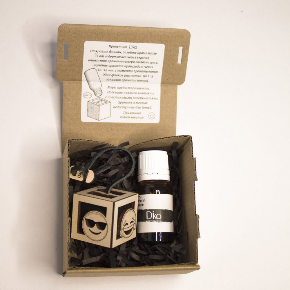 Наша жизнь состоит не только из слов, необходимо учитывать интонации, жесты и мимику. Дизайнерский ароматизатор в машину ручной работы от Di-ko это аксессуары для автомобиля оригинального стиля в сочетании с приятным ароматом от французского производителя. Наши аксессуары в машину изготовлены из натуральных эко материалов: куб из дерева и натуральный фетр с наполнением буковой щепы. Такая подвеска в машину на зеркало в авто в сочетании материалов отлично раскрывает аромат и распространяет его звучание на длительное время в салон автомобиля. Ароматизатор в авто Di-ko легко повесить за шнурок из натуральной кожи,удобно отрегулировать по высоте. Наш подарочный набор идеален в подарок мужчине любимому папе мужу брату другу коллеге на день рождение 23 февраля 14 февраля 8 марта на праздник. Подарочный бокс и наши автоаксессуары в салон автомобиля с лучшими ароматами всегда будут напоминать о вашем внимании. Автотовары Di-ko это гарантия качества.