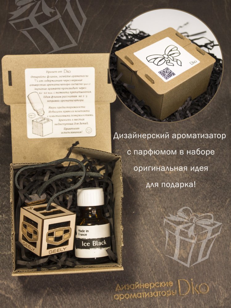 Французский автопарфюм в салоне Geely в дизайнерском исполнении от Diko. Автоароматизатор позволит долго наслаждаться приятным, дорогим ароматом и внешней эстетикой в салоне автомобиля. Стильный, минималистичный дизайн и легендарный запах парфюмерного масла дарят истинное ощущение роскоши. Ароматизатор для автомобиля Джили - это парфюм для салона ручной работы с искусной детализацией. Пахучка подвеска в авто из эко материалов в деревянном корпусе, внутри щепа бука, снаружи фетр и 100% кожа, это сочетание материалов полностью раскрывает аромат. Арома-подвеска на шнурке регулируется по высоте. Ароматизатор в машину Джили многократно превосходит пластиковые, стеклянные аромадиффузоры и другие аналоги. Ароматизатор в авто унисекс одинаково понравится мужчине водителю и автоледи. Многоразовый авто ароматизатор Geely - безупречный подарок для автолюбителя. Дарить такое приятно, а получать - вдвойне! Подарочная упаковка приумножит эмоции от презента.