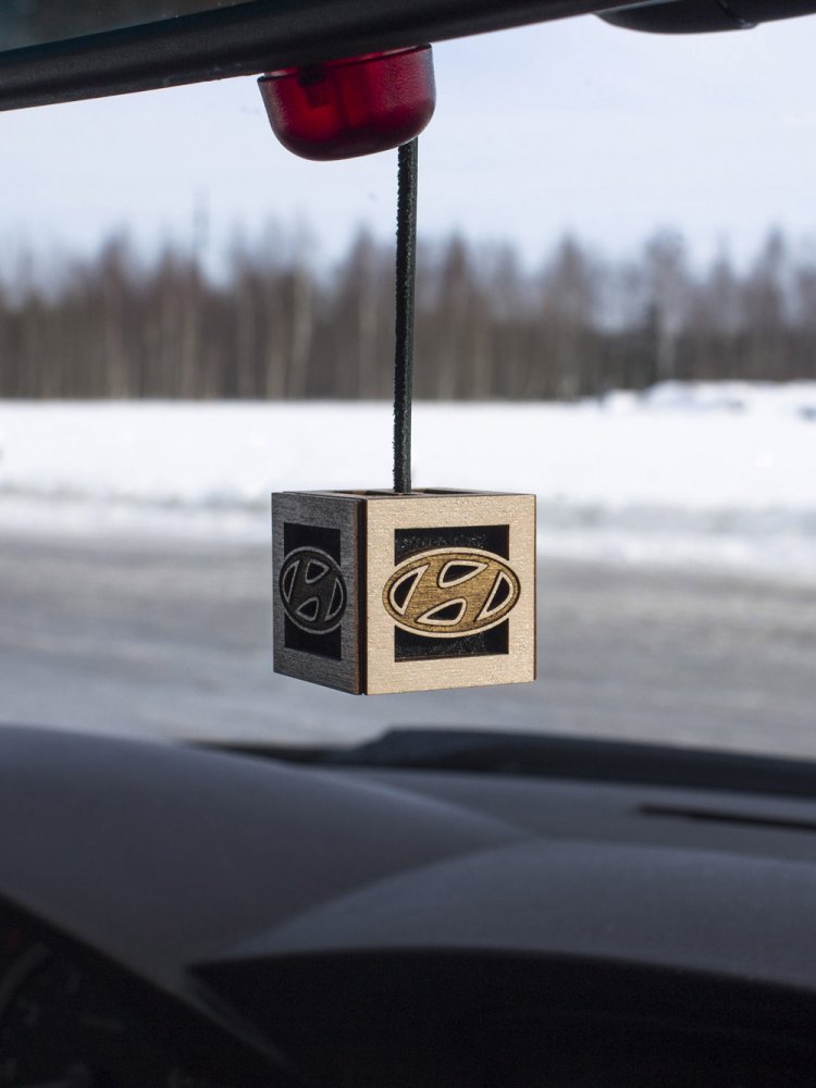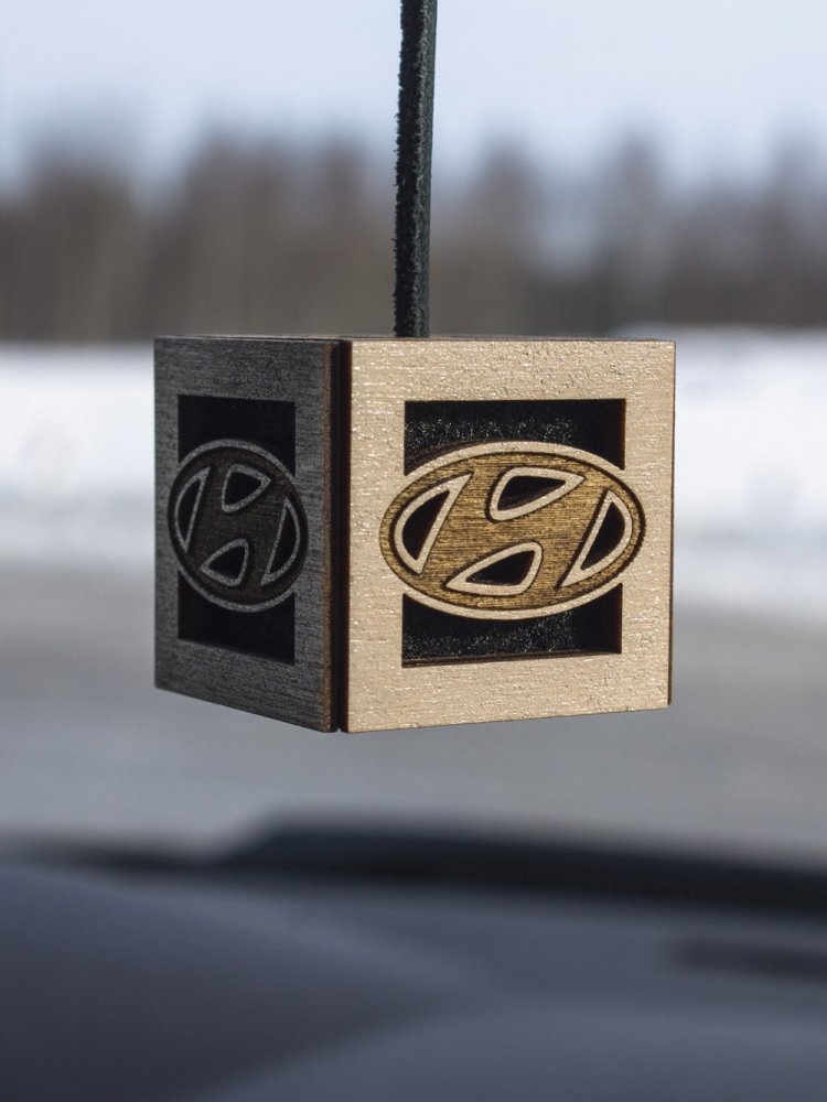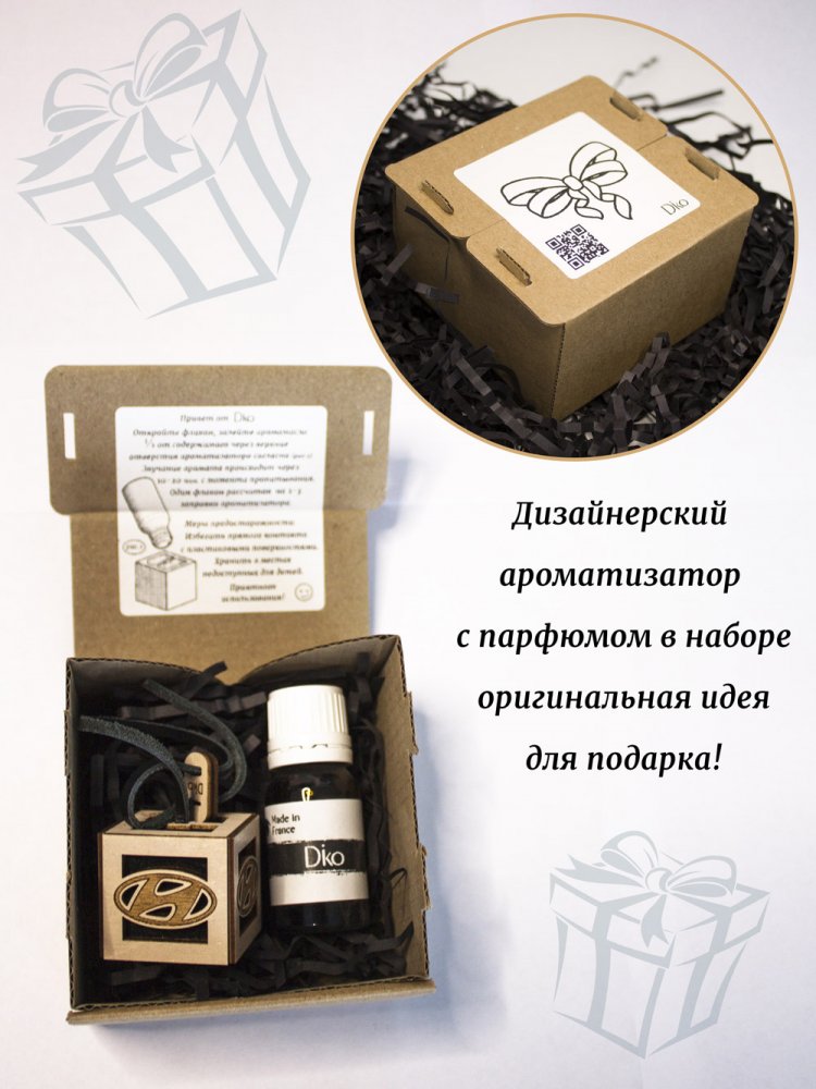 Дизайнерский ароматизатор для автомобиля Хендай - это изысканный шик французской парфюмерии и эффектный элемент салона. Автопарфюм из 100% дерева и кожи - маленькое произведение искусства, которое достойно подчеркнет статус автовладельца. Благородный и стойкий аромат для авто с богатым шлейфом плавно раскрывается в аромадиффузоре и долго держится. Подвеска автопарфюм Di-ko влюбит в себя с первого звучания, и, окутав душистым облаком, подарит ощущение избранности. Шикарный ароматизатор Hyundai куб с натуральной буковой щепой, с элементами кожи и фетра безупречен как женский и мужской парфюм для автомобиля. Эксклюзивный аромат для авто на кожаном шнурке регулируется по высоте, не закрывая обзора. Подарочный ароматизатор в машину Hyundai - аксессуар для авто премиум-качества и шикарный подарок водителю. Эстетичная упаковка усилит впечатление от подарка. Многоразовый авто Ароматизатор Hyundai - это благоухание и внешняя эстетика надолго!