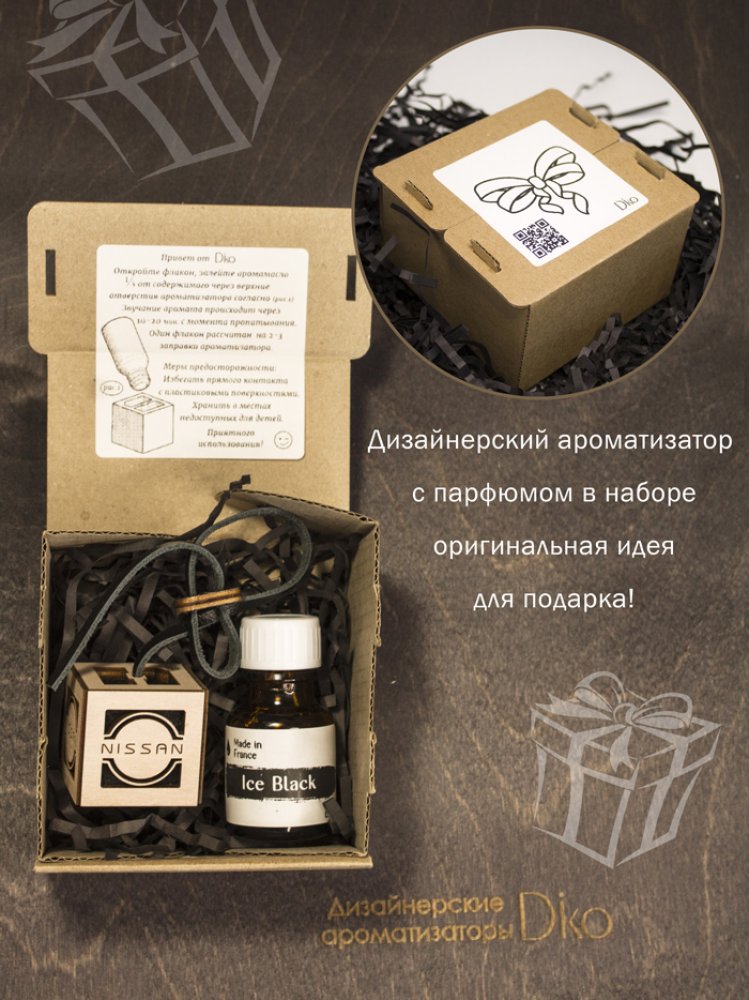 Французский автопарфюм в салоне Nissan New в дизайнерском исполнении от Diko. Автоароматизатор позволит долго наслаждаться приятным, дорогим ароматом и внешней эстетикой в салоне автомобиля. Стильный, минималистичный дизайн и легендарный запах парфюмерного масла дарят истинное ощущение роскоши. Ароматизатор для автомобиля Ниссан c новым лого- это парфюм для салона ручной работы с искусной детализацией. Пахучка подвеска в авто из эко материалов в деревянном корпусе, внутри щепа бука, снаружи фетр и 100% кожа, это сочетание материалов полностью раскрывает аромат. Арома-подвеска на шнурке регулируется по высоте. Ароматизатор в машину Nissan многократно превосходит пластиковые, стеклянные аромадиффузоры и другие аналоги. Ароматизатор в авто унисекс одинаково понравится мужчине водителю и автоледи. Многоразовый авто ароматизатор Nissan - безупречный подарок для автолюбителя. Дарить такое приятно, а получать - вдвойне! Подарочная упаковка приумножит эмоции от презента.