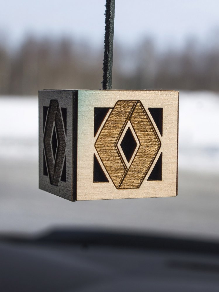 Дизайнерский ароматизатор для автомобиля Рено - это изысканный шик французской парфюмерии и эффектный элемент салона. Автопарфюм из 100% дерева и кожи - маленькое произведение искусства, которое достойно подчеркнет статус автовладельца. Благородный и стойкий аромат для авто с богатым шлейфом плавно раскрывается в аромадиффузоре и долго держится. Подвеска автопарфюм Di-ko влюбит в себя с первого звучания, и, окутав душистым облаком, подарит ощущение избранности. Шикарный ароматизатор Renault куб с натуральной буковой щепой, с элементами кожи и фетра безупречен как женский и мужской парфюм для автомобиля. Эксклюзивный аромат для авто на кожаном шнурке регулируется по высоте, не закрывая обзора. Подарочный ароматизатор в машину Renault - аксессуар для авто премиум-качества и шикарный подарок водителю. Эстетичная упаковка усилит впечатление от подарка. Многоразовый авто Ароматизатор Renault - это благоухание и внешняя эстетика надолго!