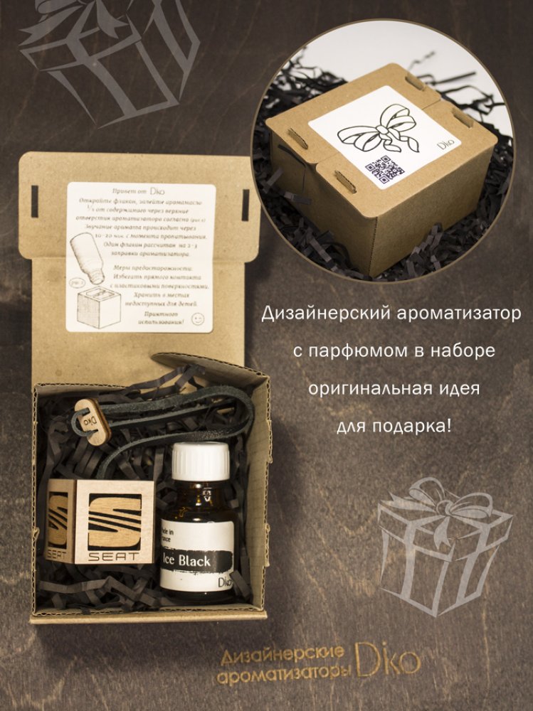 Французский автопарфюм в салоне SEAT в дизайнерском исполнении от Diko. Автоароматизатор позволит долго наслаждаться приятным, дорогим ароматом и внешней эстетикой в салоне автомобиля. Стильный, минималистичный дизайн и легендарный запах парфюмерного масла дарят истинное ощущение роскоши. Ароматизатор для автомобиля Сеат - это парфюм для салона ручной работы с искусной детализацией. Пахучка подвеска в авто из эко материалов в деревянном корпусе, внутри щепа бука, снаружи фетр и 100% кожа, это сочетание материалов полностью раскрывает аромат. Арома-подвеска на шнурке регулируется по высоте. Ароматизатор в машину Сеат многократно превосходит пластиковые, стеклянные аромадиффузоры и другие аналоги. Ароматизатор в авто унисекс одинаково понравится мужчине водителю и автоледи. Многоразовый авто ароматизатор SEAT - безупречный подарок для автолюбителя. Дарить такое приятно, а получать - вдвойне! Подарочная упаковка приумножит эмоции от презента.