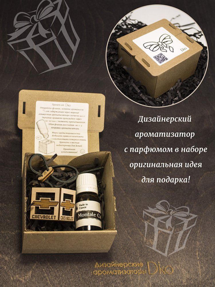 Французский автопарфюм в салоне Chevrolet в дизайнерском исполнении от Diko. Автоароматизатор позволит долго наслаждаться приятным, дорогим ароматом и внешней эстетикой в салоне автомобиля. Стильный, минималистичный дизайн и легендарный запах парфюмерного масла дарят истинное ощущение роскоши. Ароматизатор для автомобиля Шевролет - это парфюм для салона ручной работы с искусной детализацией. Пахучка подвеска в авто из эко материалов в деревянном корпусе, внутри щепа бука, снаружи фетр и 100% кожа, это сочетание материалов полностью раскрывает аромат. Арома-подвеска на шнурке регулируется по высоте. Ароматизатор в машину Chevrolet многократно превосходит пластиковые, стеклянные аромадиффузоры и другие аналоги. Ароматизатор в авто унисекс одинаково понравится мужчине водителю и автоледи. Многоразовый авто ароматизатор Chevrolet - безупречный подарок для автолюбителя. Дарить такое приятно, а получать - вдвойне! Подарочная упаковка приумножит эмоции от презента.