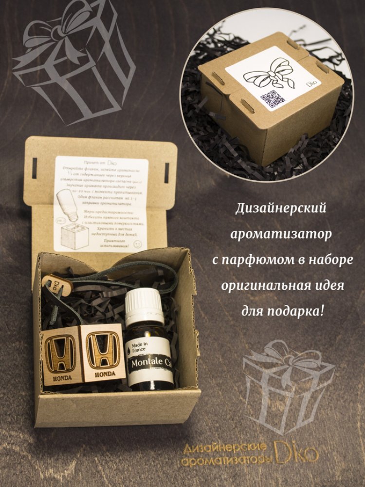Французский автопарфюм в салоне Honda в дизайнерском исполнении от Diko. Автоароматизатор позволит долго наслаждаться приятным, дорогим ароматом и внешней эстетикой в салоне автомобиля. Стильный, минималистичный дизайн и легендарный запах французского парфюмерного масла дарят истинное ощущение роскоши. Ароматизатор для автомобиля Хонда - это парфюм для салона ручной работы с искусной детализацией. Пахучка подвеска в авто из эко материалов в деревянном корпусе, внутри щепа бука, снаружи фетр и 100% кожа, это сочетание материалов полностью раскрывает аромат. Арома-подвеска на шнурке регулируется по высоте. Ароматизатор в машину Honda многократно превосходит пластиковые, стеклянные аромадиффузоры и другие аналоги. Ароматизатор в авто унисекс одинаково понравится мужчине водителю и автоледи. Многоразовый авто ароматизатор Honda - безупречный подарок для автолюбителя. Дарить такое приятно, а получать - вдвойне! Подарочная упаковка приумножит эмоции от презента.