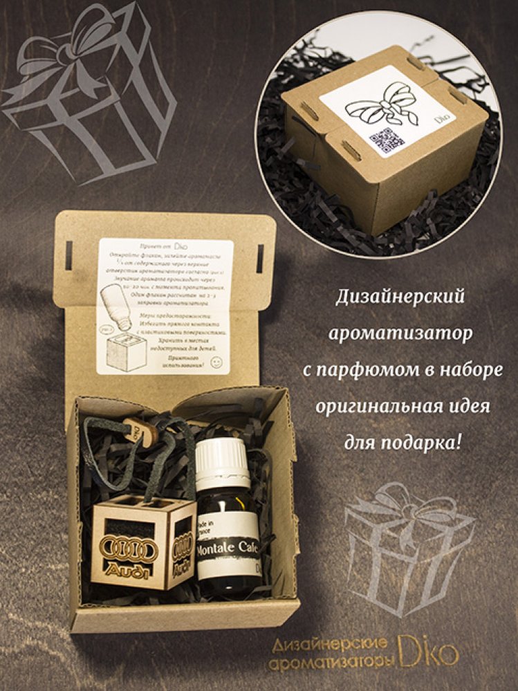Французский автопарфюм в салоне Audi в дизайнерском исполнении от Diko. Автоароматизатор позволит долго наслаждаться приятным, дорогим ароматом и внешней эстетикой в салоне автомобиля. Стильный, минималистичный дизайн и легендарный запах парфюмерного масла дарят истинное ощущение роскоши. Ароматизатор для автомобиля Ауди - это парфюм для салона ручной работы с искусной детализацией. Пахучка подвеска в авто из эко материалов в деревянном корпусе, внутри щепа бука, снаружи фетр и 100% кожа, это сочетание материалов полностью раскрывает аромат. Арома-подвеска на шнурке регулируется по высоте. Ароматизатор в машину Audi многократно превосходит пластиковые, стеклянные аромадиффузоры и другие аналоги. Ароматизатор в авто унисекс одинаково понравится мужчине водителю и автоледи. Многоразовый авто ароматизатор Audi - безупречный подарок для автолюбителя. Дарить такое приятно, а получать - вдвойне! Подарочная упаковка приумножит эмоции от презента.