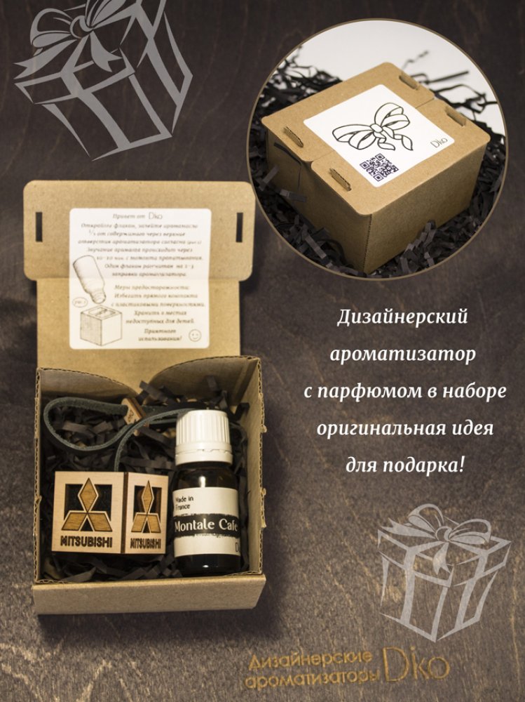 Французский автопарфюм в салоне Mitsubishi в дизайнерском исполнении от Diko. Автоароматизатор позволит долго наслаждаться приятным, дорогим ароматом и внешней эстетикой в салоне автомобиля. Стильный, минималистичный дизайн и легендарный запах парфюмерного масла Montale Intense Cafe дарят истинное ощущение роскоши. Ароматизатор для автомобиля Митсубиши - это парфюм для салона ручной работы с искусной детализацией. Пахучка подвеска в авто из эко материалов в деревянном корпусе, внутри щепа бука, снаружи фетр и 100% кожа, это сочетание материалов полностью раскрывает аромат. Арома-подвеска на шнурке регулируется по высоте. Ароматизатор в машину Mitsubishi многократно превосходит пластиковые, стеклянные аромадиффузоры и другие аналоги. Ароматизатор в авто унисекс одинаково понравится мужчине водителю и автоледи. Многоразовый авто ароматизатор Mitsubishi - безупречный подарок для автолюбителя. Дарить такое приятно, а получать - вдвойне! Подарочная упаковка приумножит эмоции от презента.
