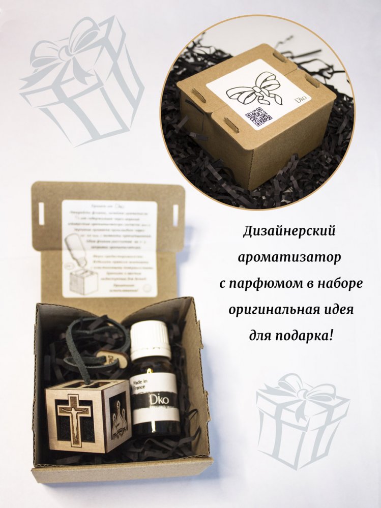 Православный дизайнерский ароматизатор в машину ручной работы от Di-ko это аксессуары для автомобиля оригинального стиля в сочетании с приятным ароматом от французского производителя. Наши аксессуары в машину изготовлены из натуральных эко материалов: куб из дерева и натуральный фетр с наполнением буковой щепы. Такая подвеска в машину на зеркало в авто в сочетании материалов отлично раскрывает аромат и распространяет его звучание на длительное время в салон автомобиля. Ароматизатор в авто Di-ko легко повесить за шнурок из натуральной кожи,удобно отрегулировать по высоте. Наш подарочный набор идеален в подарок мужчине любимому папе мужу брату другу коллеге на день рождение 23 февраля 14 февраля 8 марта на праздник. Подарочный бокс и наши автоаксессуары в салон автомобиля с лучшими ароматами всегда будут напоминать о вашем внимании. Автотовары Di-ko это гарантия качества.