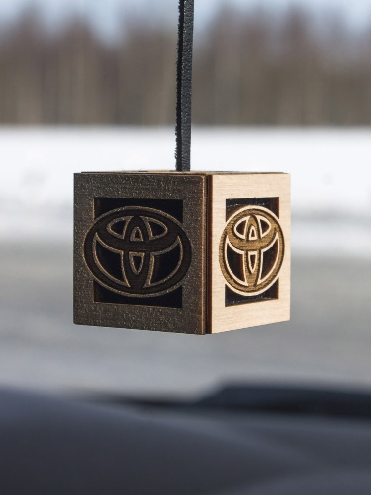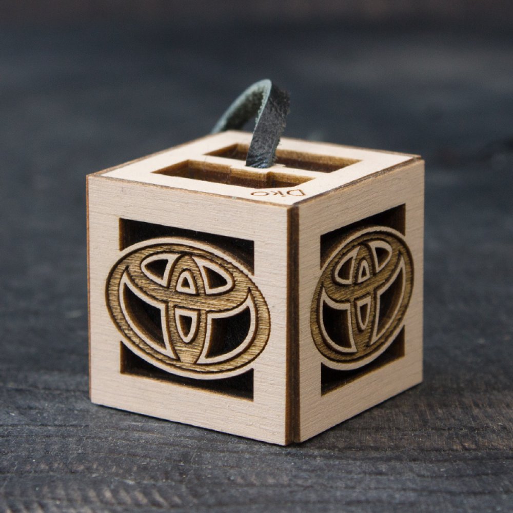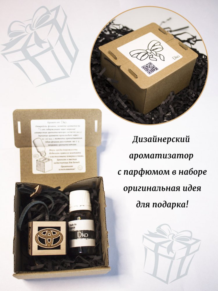 Дизайнерский ароматизатор для автомобиля Тойота - это изысканный шик французской парфюмерии и эффектный элемент салона. Автопарфюм из 100% дерева и кожи - маленькое произведение искусства, которое достойно подчеркнет статус автовладельца. Благородный и стойкий аромат для авто с богатым шлейфом плавно раскрывается в аромадиффузоре и долго держится. Подвеска автопарфюм Di-ko влюбит в себя с первого звучания, и, окутав душистым облаком, подарит ощущение избранности. Шикарный ароматизатор Toyota куб с натуральной буковой щепой, с элементами кожи и фетра безупречен как женский и мужской парфюм для автомобиля. Эксклюзивный аромат для авто на кожаном шнурке регулируется по высоте, не закрывая обзора. Подарочный ароматизатор в машину Toyota - аксессуар для авто премиум-качества и шикарный подарок водителю. Эстетичная упаковка усилит впечатление от подарка. Многоразовый авто Ароматизатор Toyota - это благоухание и внешняя эстетика надолго!