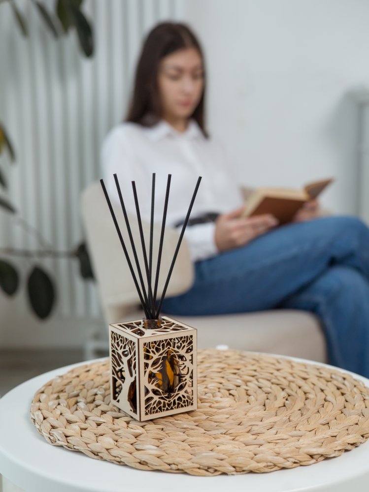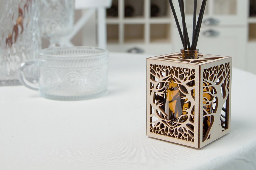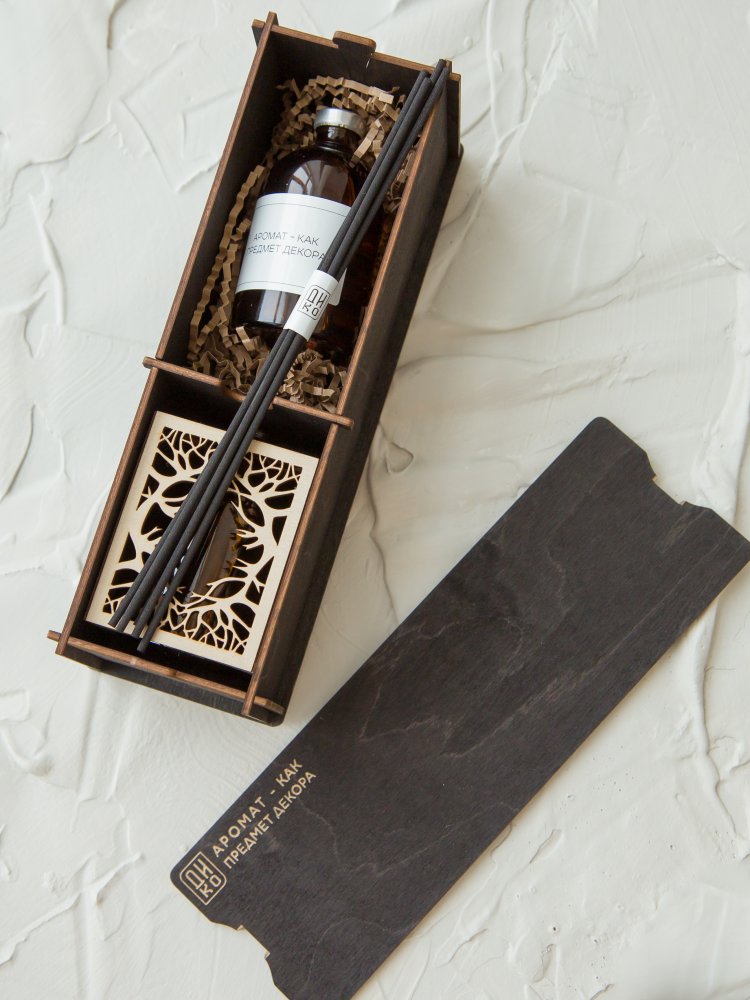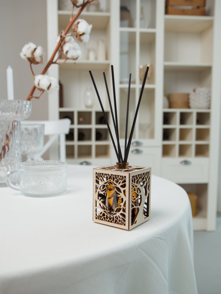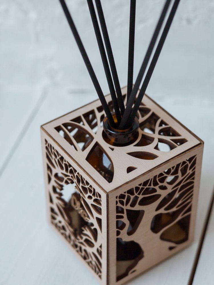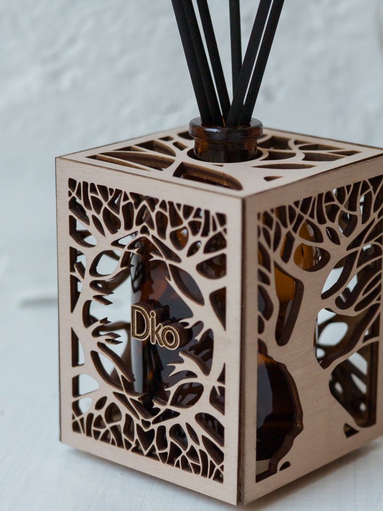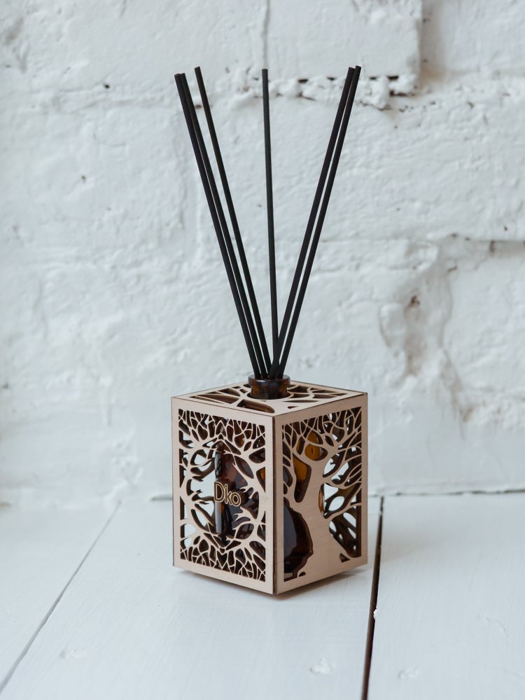 Уникальный дизайн аромадиффузора станет отличным дополнением и украшением для любого интерьера. Арома диффузор изготовлен только из высококачественных натуральных материалов . Емкость для парфюма 100 мл выполнена из стекла, а декоративное оформление из дерева лиственных парод. Все комплектующие собраны вручную.(Жидкость и фибровые палочки в комплект не входят.)