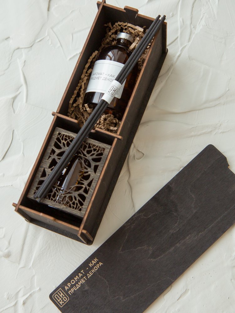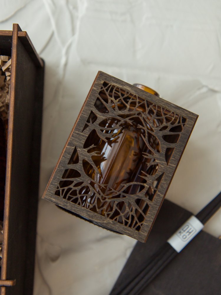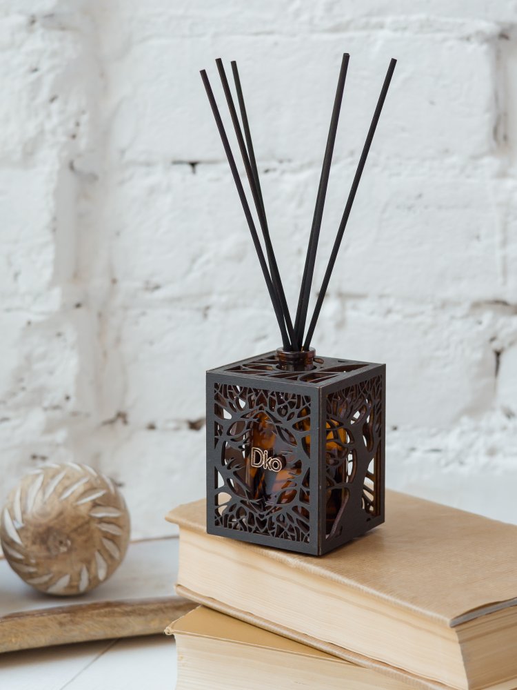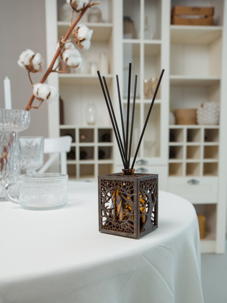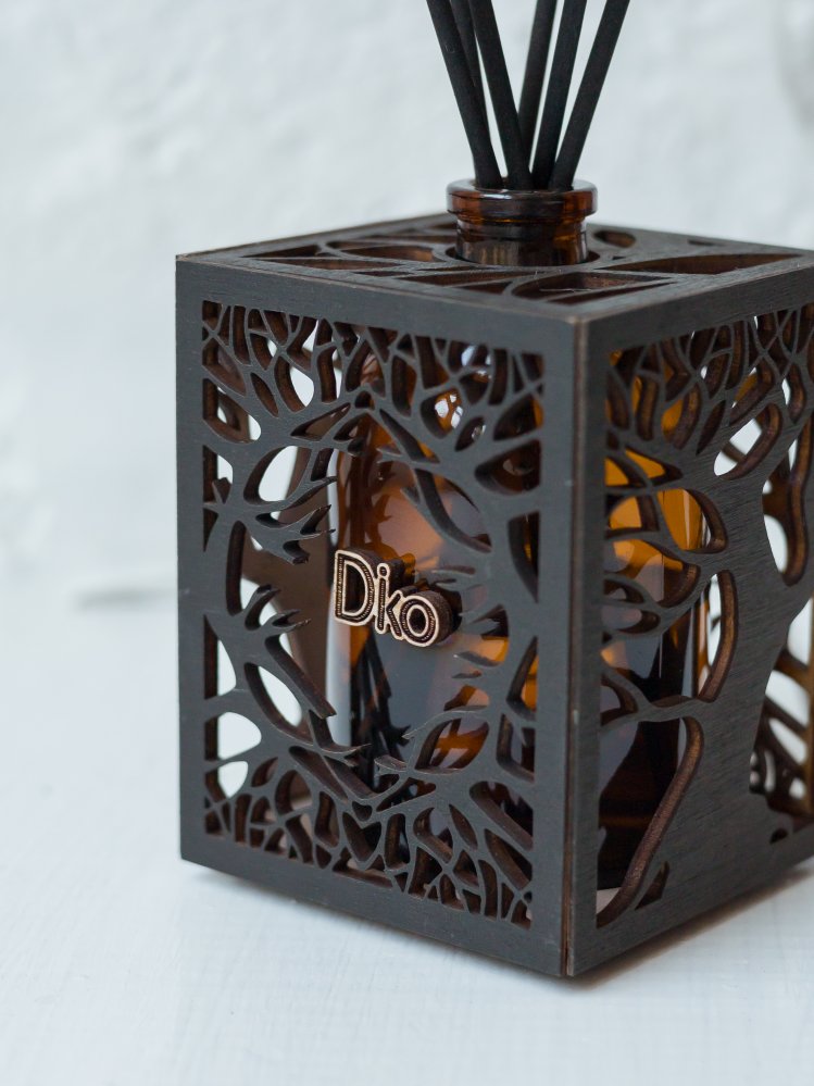Уникальный дизайн аромадиффузора станет отличным дополнением и украшением для любого интерьера. Арома диффузор изготовлен только из высококачественных натуральных материалов . Емкость для парфюма 100 мл выполнена из стекла, а декоративное оформление из дерева лиственных парод. Все комплектующие собраны вручную.(Жидкость и фибровые палочки в комплект не входят.)