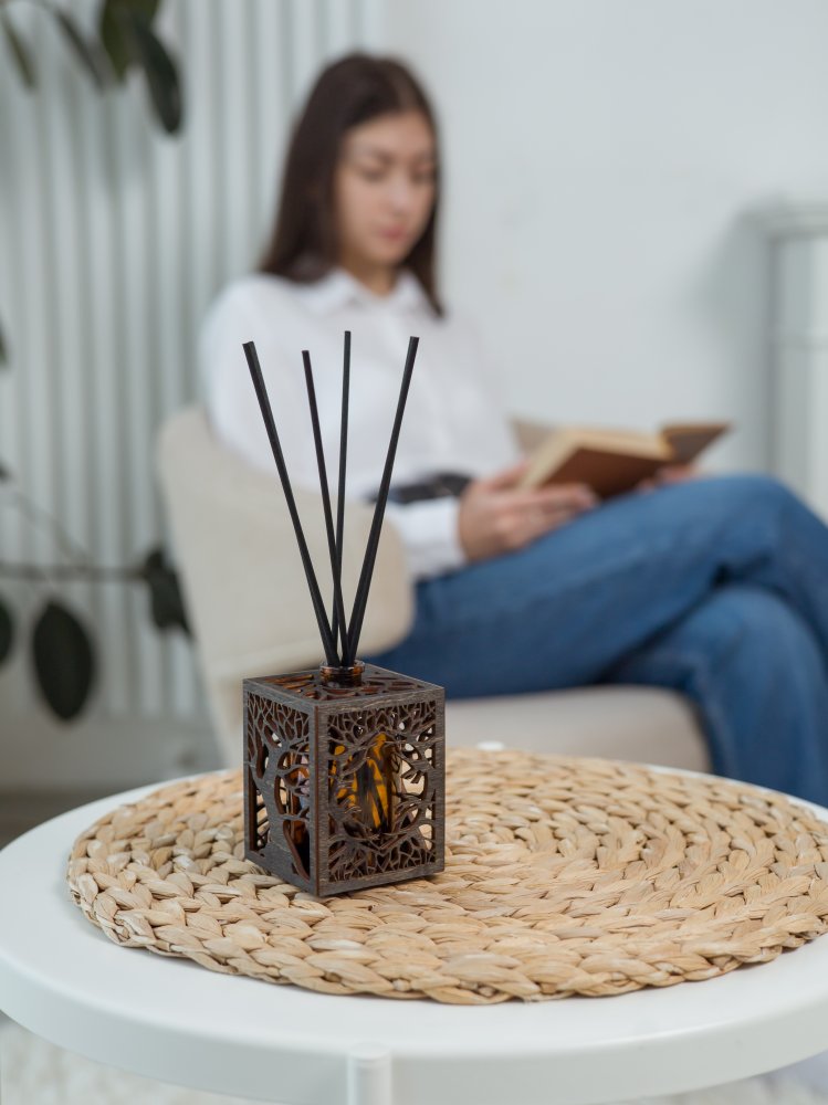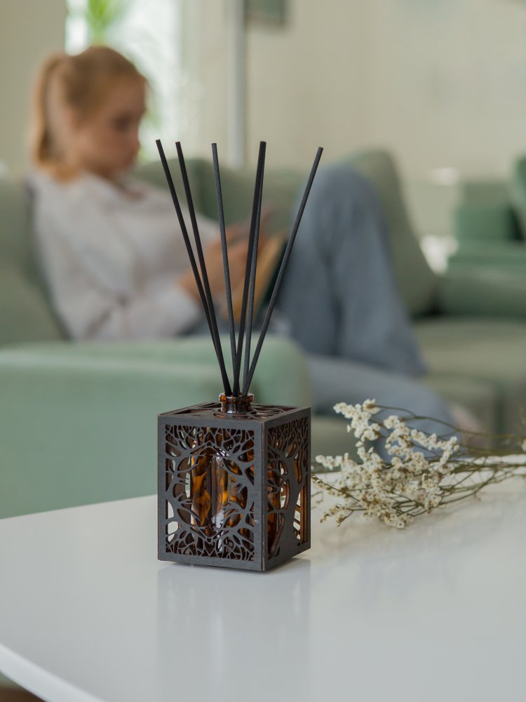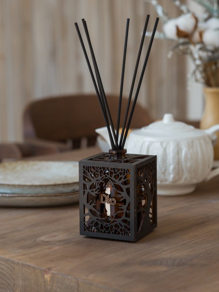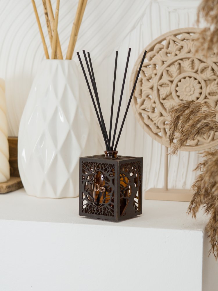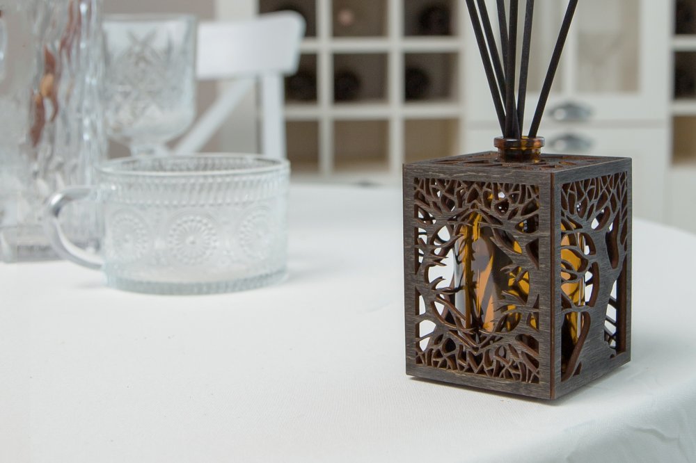Уникальный дизайн аромадиффузора станет отличным дополнением и украшением для любого интерьера. Арома диффузор изготовлен только из высококачественных натуральных материалов . Емкость для парфюма 100 мл выполнена из стекла, а декоративное оформление из дерева лиственных парод. Все комплектующие собраны вручную.(Жидкость и фибровые палочки в комплект не входят.)
