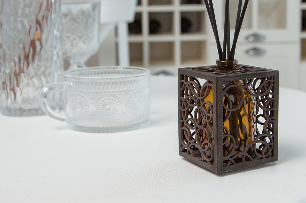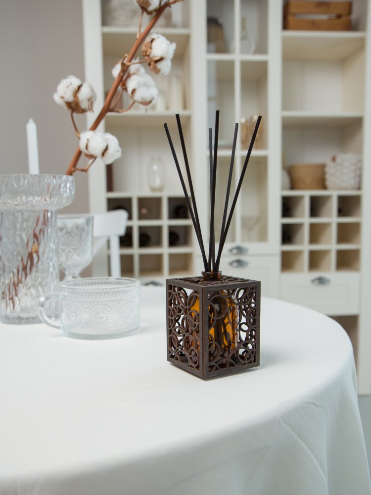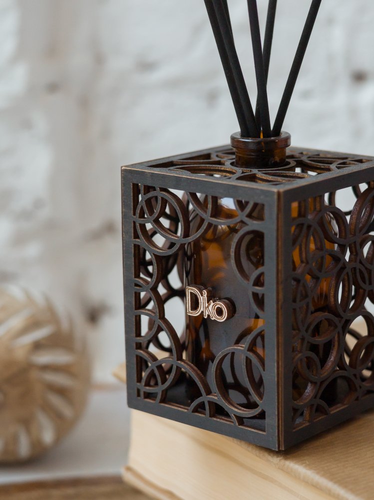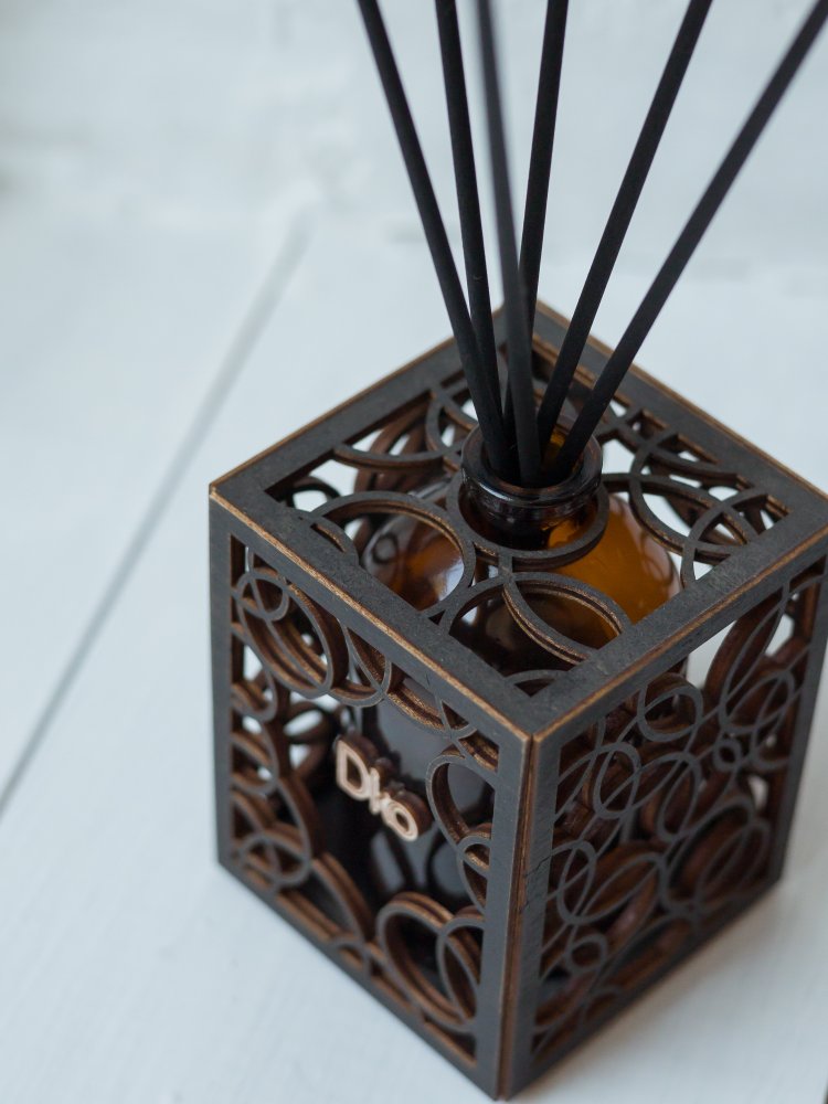 Уникальный дизайн аромадиффузора станет отличным дополнением и украшением для любого интерьера. Арома диффузор изготовлен только из высококачественных натуральных материалов . Емкость для парфюма 100 мл выполнена из стекла, а декоративное оформление из дерева лиственных парод. Все комплектующие собраны вручную.(Жидкость и фибровые палочки в комплект не входят.)