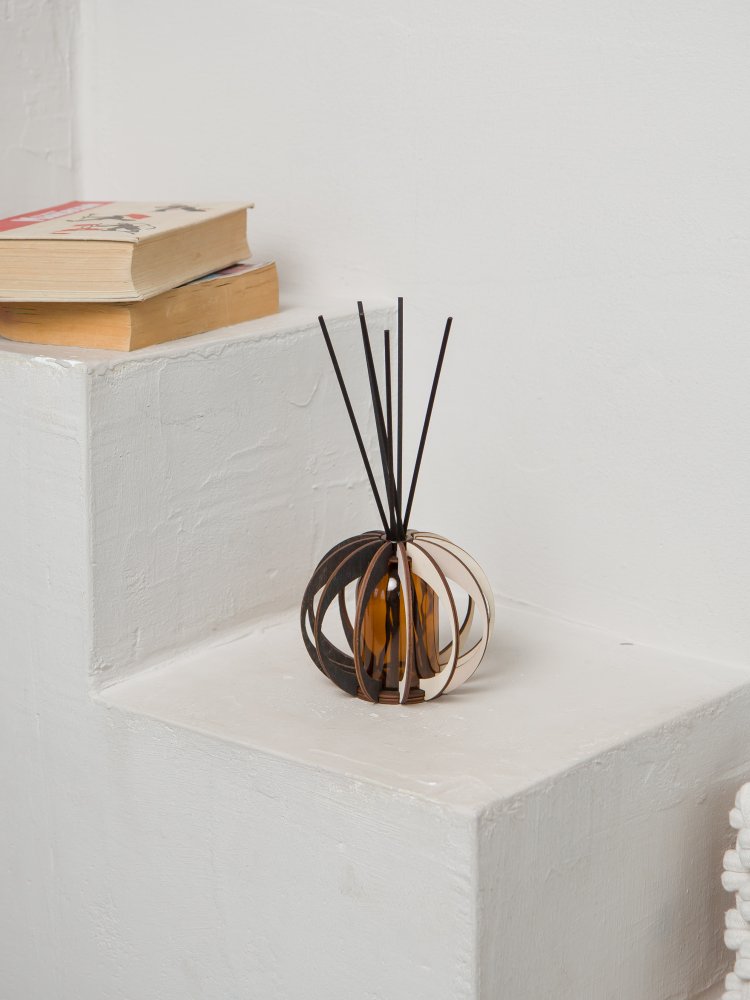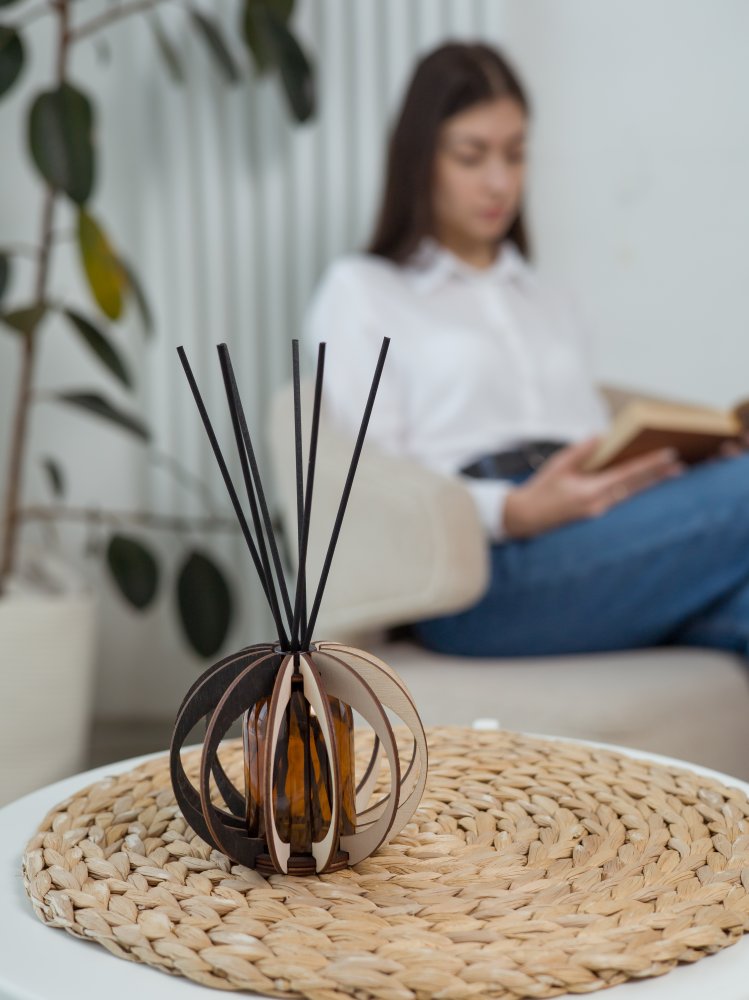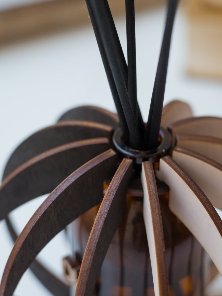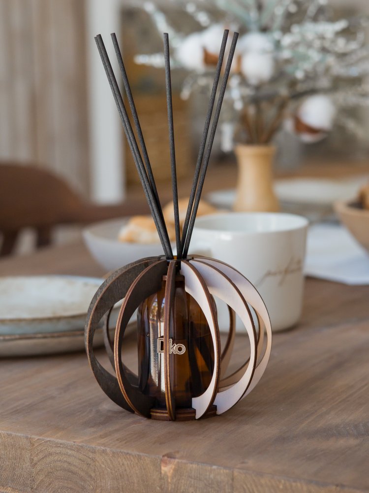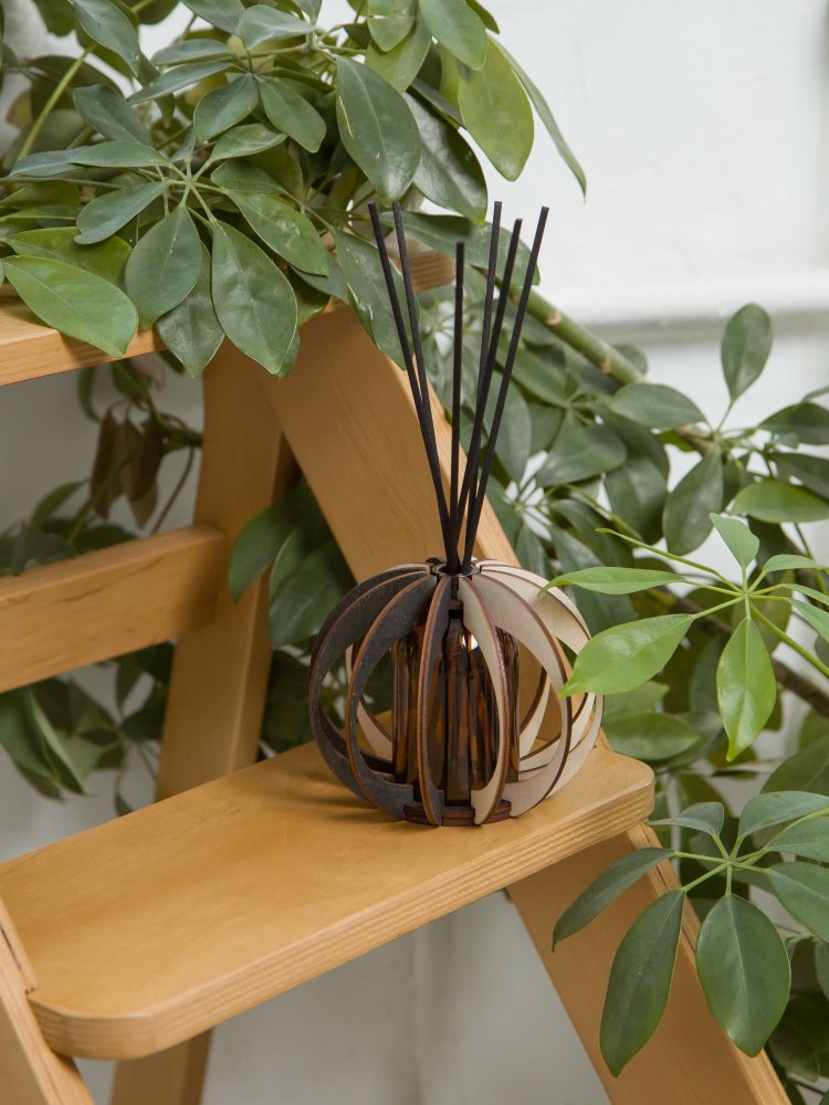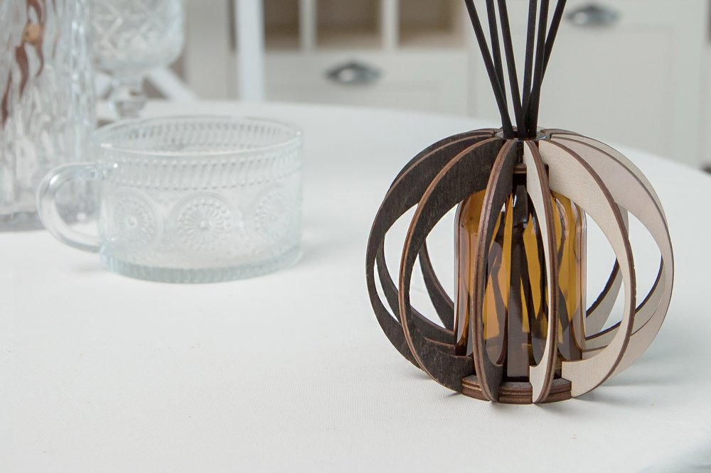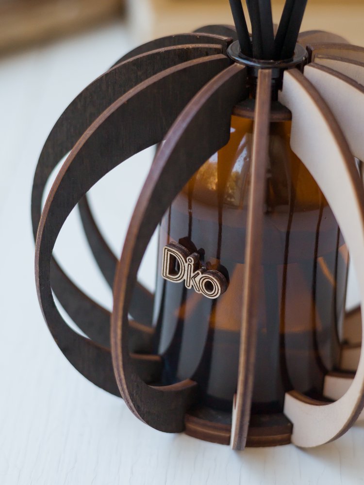 Уникальный дизайн аромадиффузора станет отличным дополнением и украшением для любого интерьера. Арома диффузор изготовлен только из высококачественных натуральных материалов . Емкость для парфюма 100 мл выполнена из стекла, а декоративное оформление из дерева лиственных парод. Все комплектующие собраны вручную. (Жидкость и фибровые палочки в комплект не входят.)