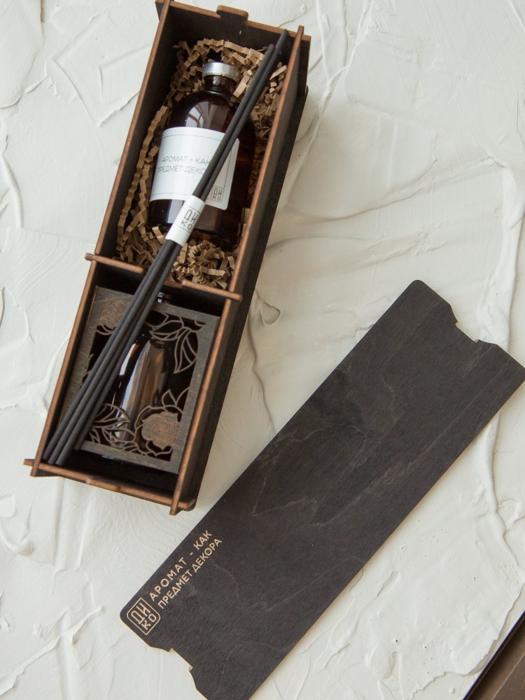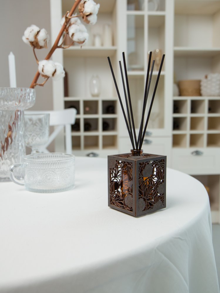 Уникальный дизайн аромадиффузора станет отличным дополнением и украшением для любого интерьера. Арома диффузор изготовлен только из высококачественных натуральных материалов . Емкость для парфюма 100 мл выполнена из стекла, а декоративное оформление из дерева лиственных парод. Все комплектующие собраны вручную.(Жидкость и фибровые палочки в комплект не входят.)