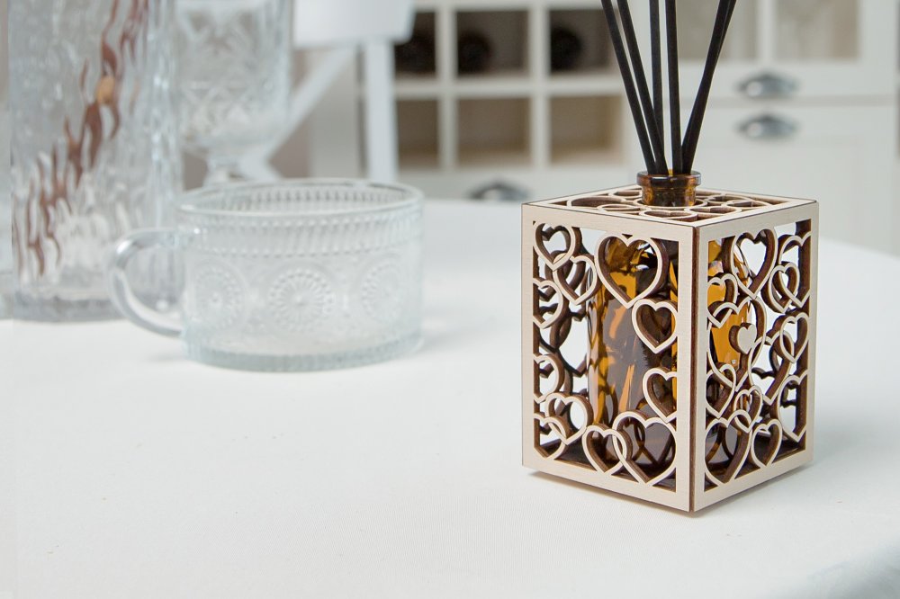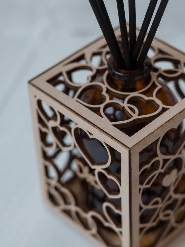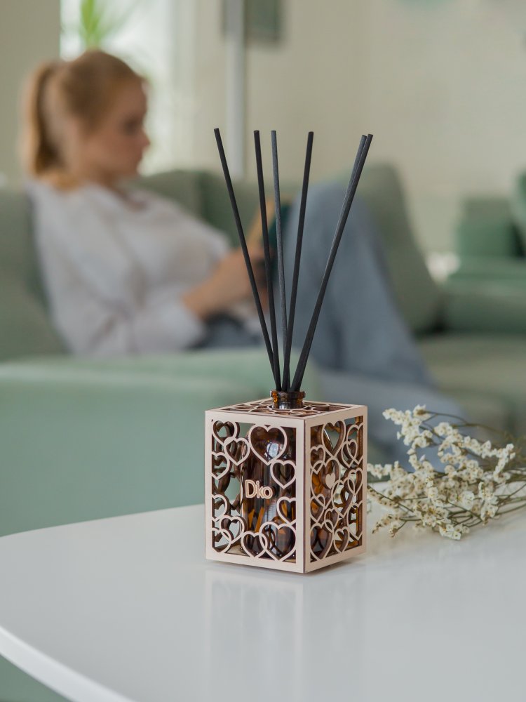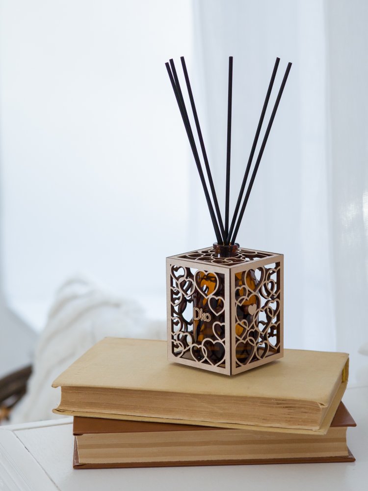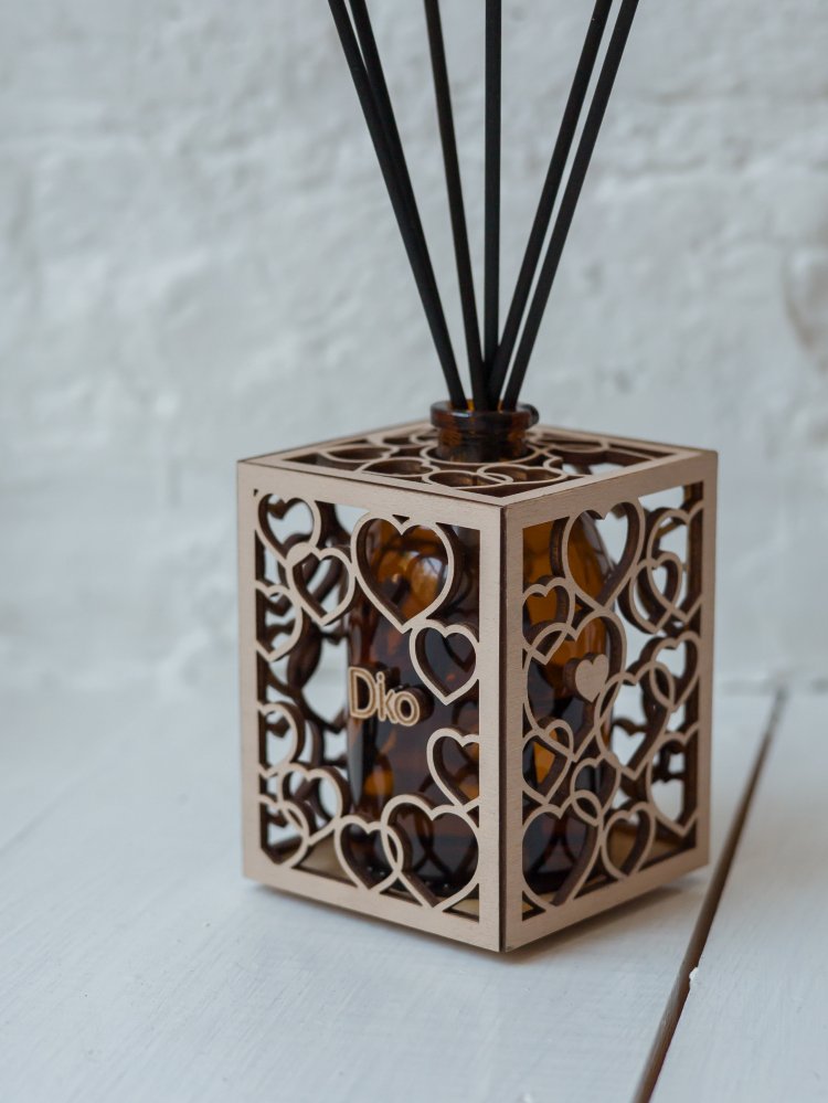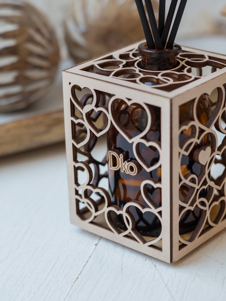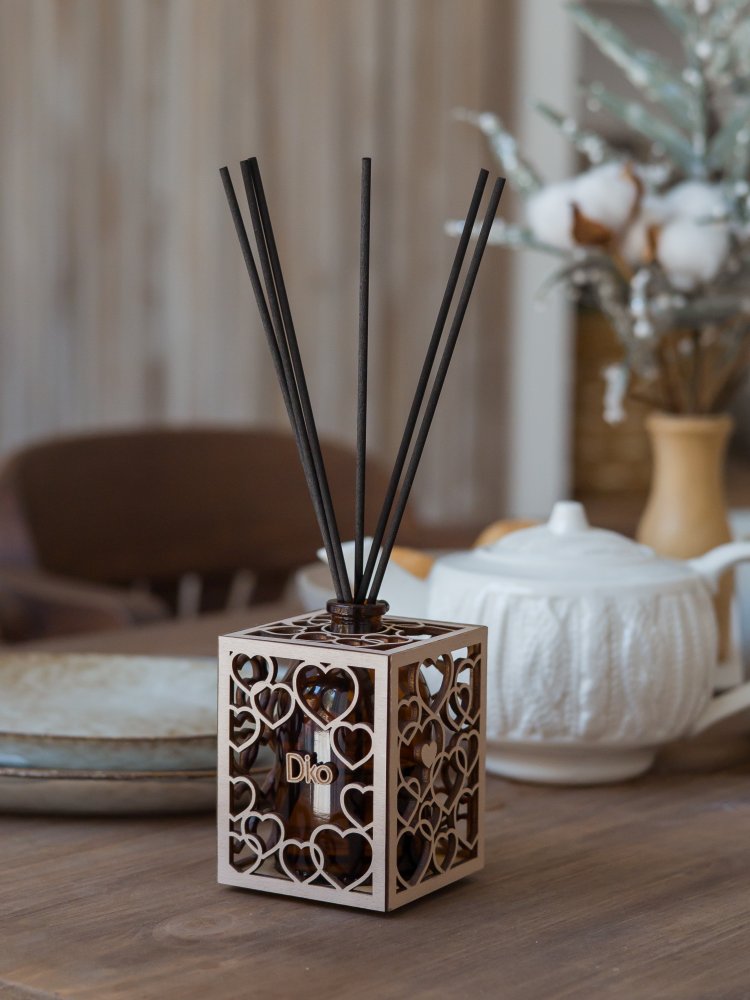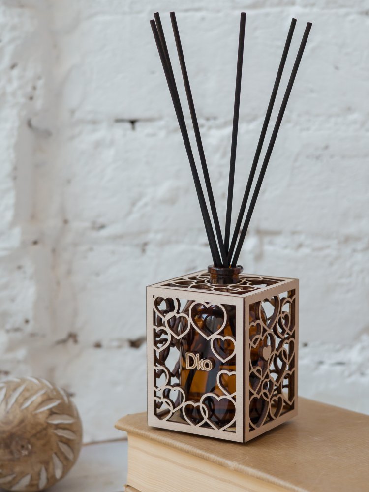 Уникальный дизайн аромадиффузора станет отличным дополнением и украшением для любого интерьера. Арома диффузор изготовлен только из высококачественных натуральных материалов . Емкость для парфюма 100 мл выполнена из стекла, а декоративное оформление из дерева лиственных парод. Все комплектующие собраны вручную.(Жидкость и фибровые палочки в комплект не входят.)